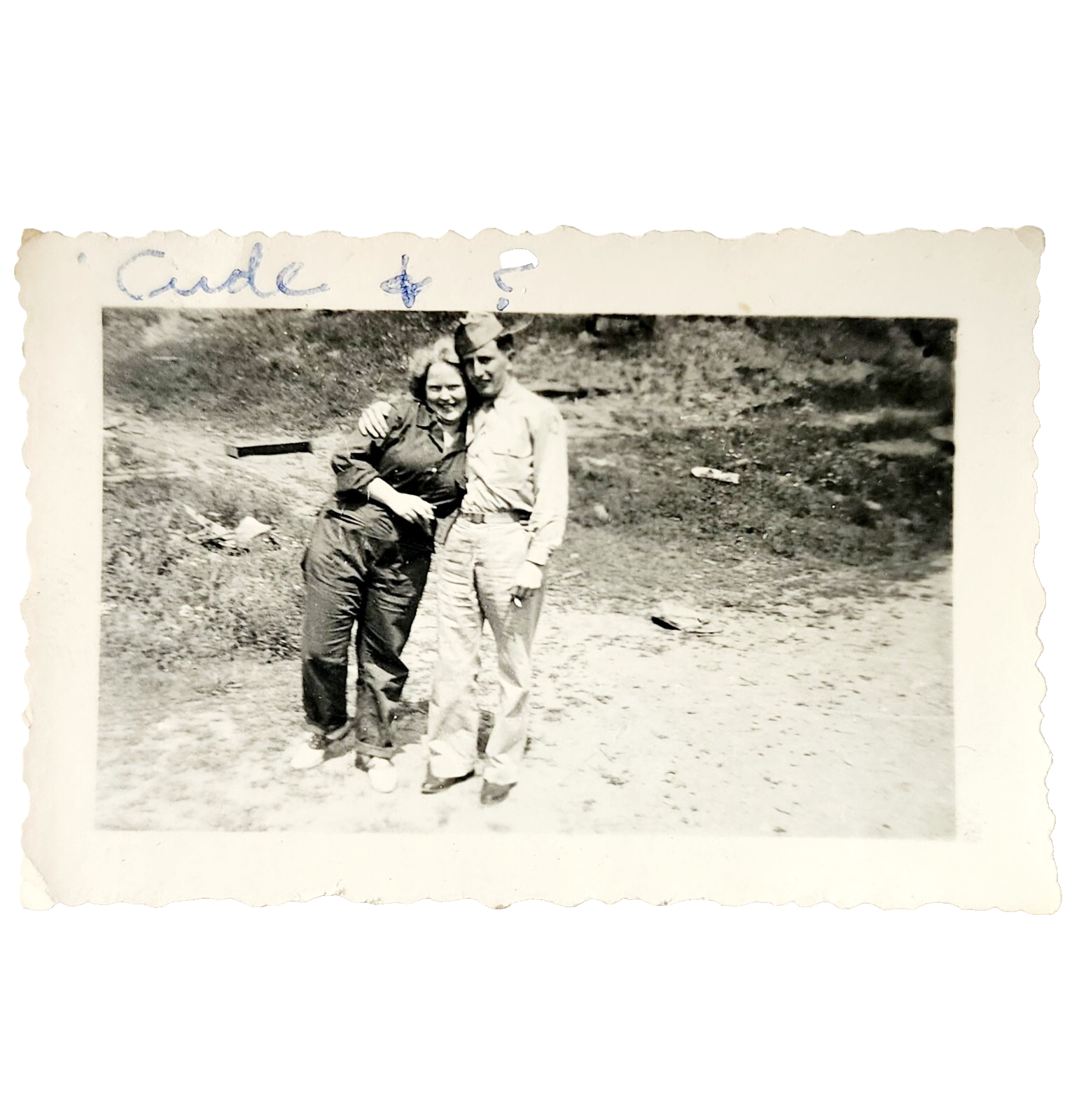 - 1940s WW2 Real Photograph Unknown Military Soldier And Wife Antique Photo F10A