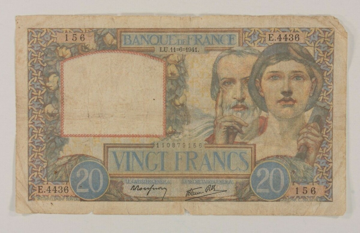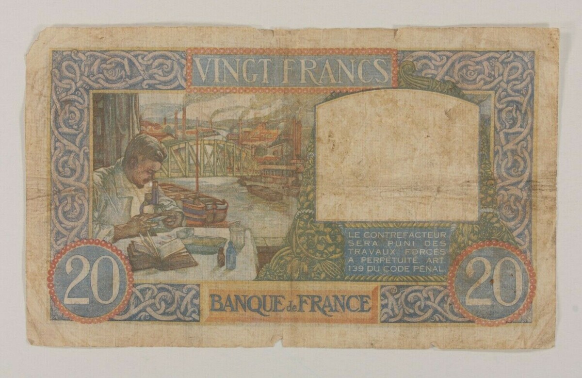 1941 France 20 Francs Note // Science et Travail (Science and Work)
