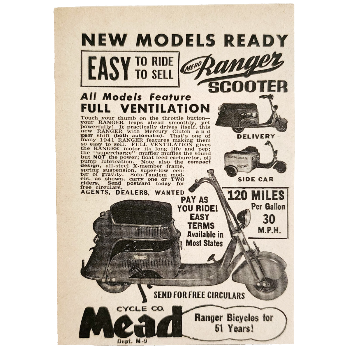 - 1941 Mead Ranger Scooter Bike Advertisement Moped Vintage Automobilia DWF23