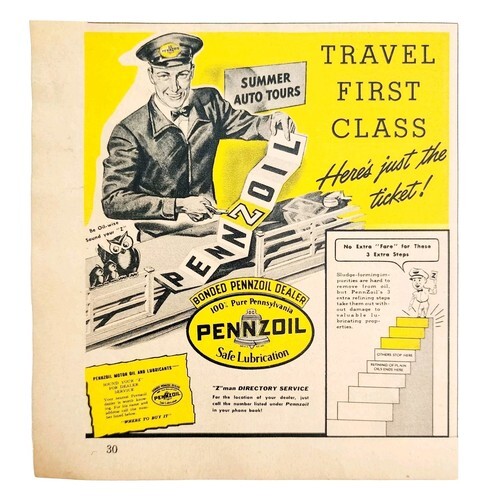 - 1941 Pennzoil Travel 1st Class Advertisement Pennsylvania Oil Automobilia DWNN12