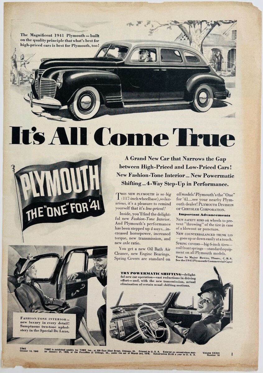 - 1941 Plymouth Sedan Advertisement Automobilia Antique Collectible DWJ5A