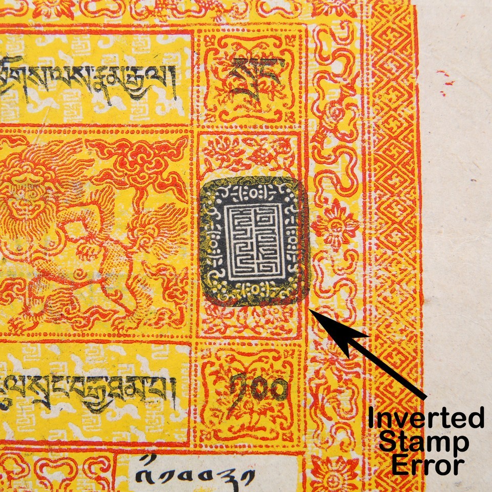 - 1942-1959 Tibet 100 Srang Note XF Reverse Error Seal Stamp Rare P #11d- show ...