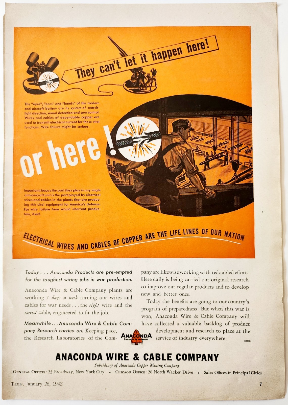 - 1942 Anaconda Copper Mining Company Advertisement Wires And Cables E90G1