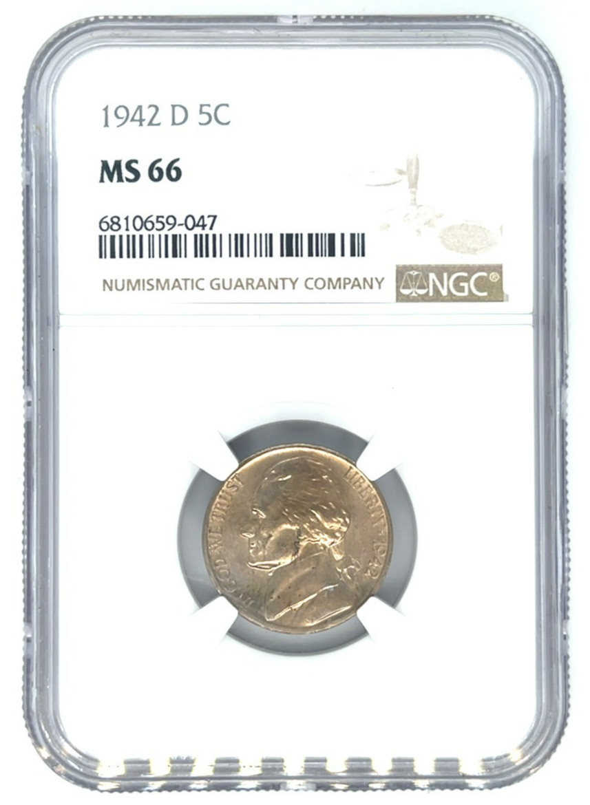 - 1942-D 5C Jefferson Nickel Graded by NGC as MS66
