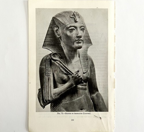 1942 Egypt Akhnaton Statue Historical Print Antique Ephemera 8x5