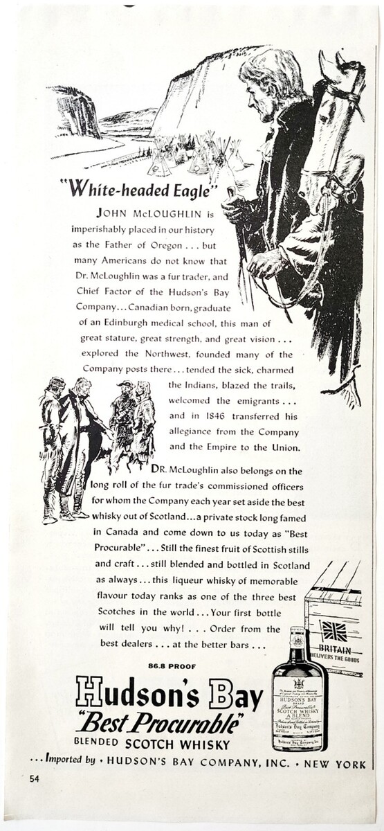 - 1942 Hudson's Bay Scotch Whisky Advertisement John McLoughlin Distillery E90G1