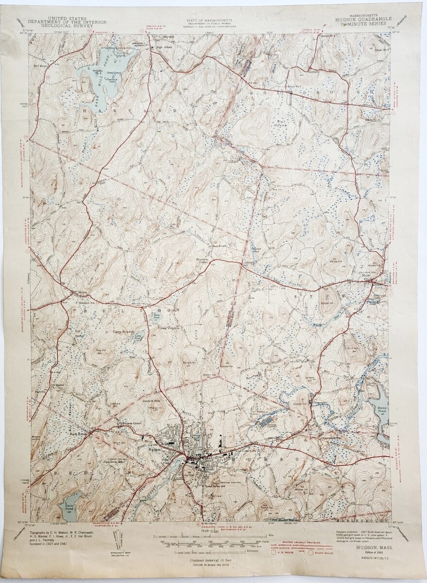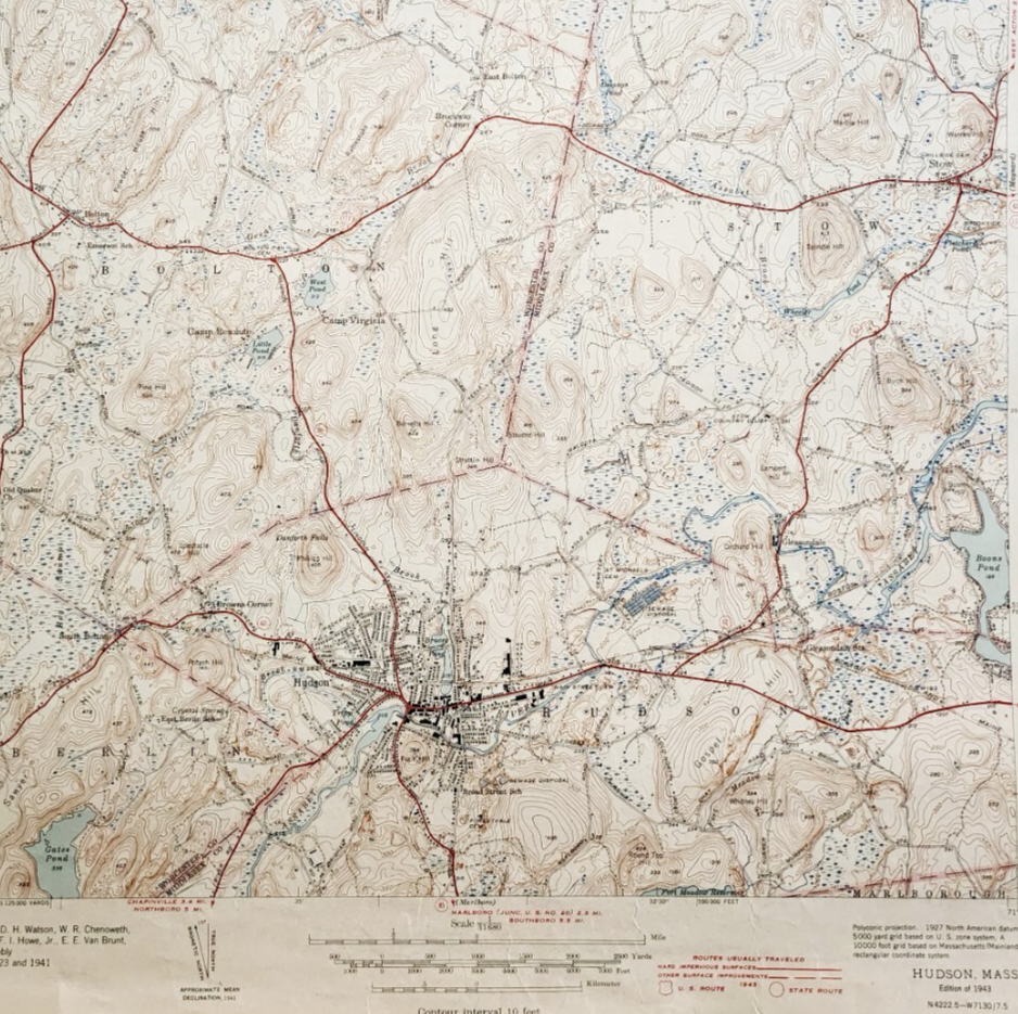 - 1943 Map USGS Topographic Hudson Massachusetts Antique Quadrangle TOPO22