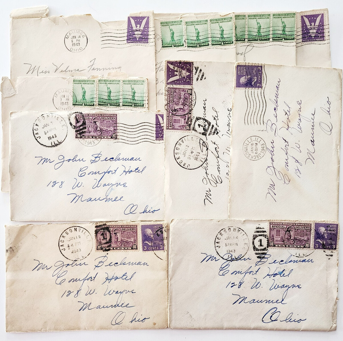 - 1943 WW2 Envelopes Stamps Military Ephemera Bundle Lot Of 10 Pcs Crafts E17