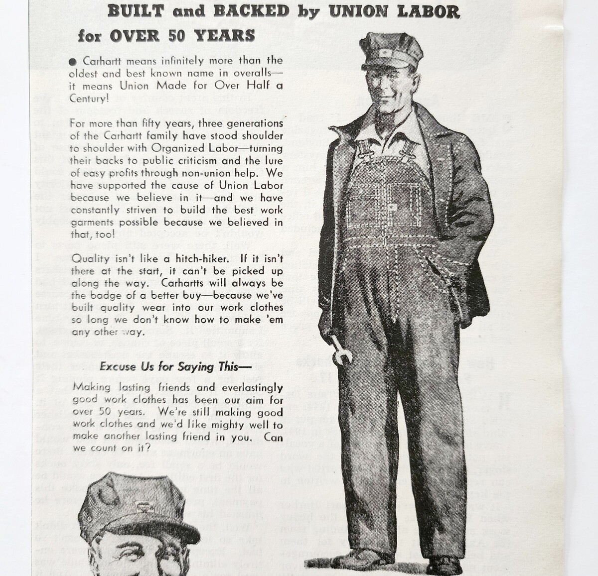 1944 Carhartt Overalls Clothing Advertisement Work Union Labor Clothes DWA20