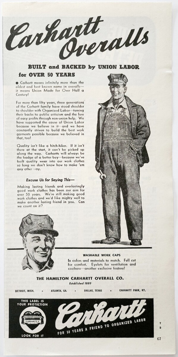 - 1944 Carhartt Overalls Clothing Advertisement Work Union Labor Clothes DWA20