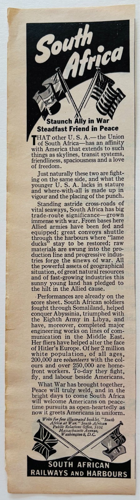 - 1944 South African Railways Advertisement WW2 Ally Train Transportation E90E3