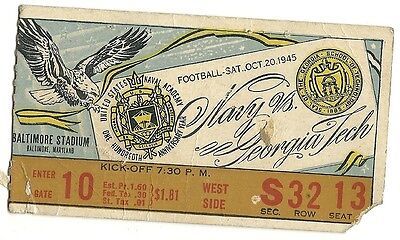 - 1945 Georgia Tech @ Navy College Football ticket Stub 10 20 1945