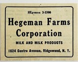 1945 WW2 German-USA Dairy Advertisement Hegeman Farms Milk Ridgewood NYC C94B