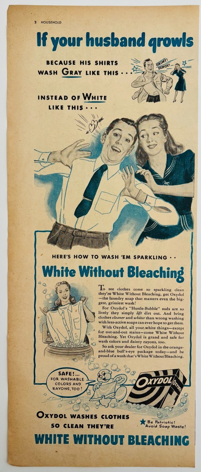 1946 Oxydol Laundry Detergent Advertisement Vintage Soap Hustle Bubble DWXX9