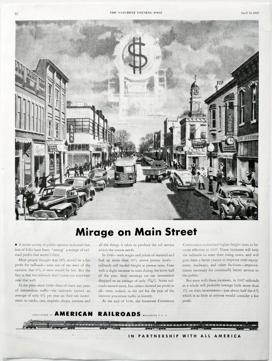 - 1947 American Railroads Train Advertisement Mirage On Maine Street DWJJ22