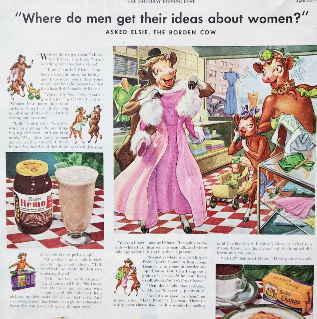 - 1947 Borden Dairy Advertisement Elsie The Cow Cheese Ice Cream Vintage DWJJ22