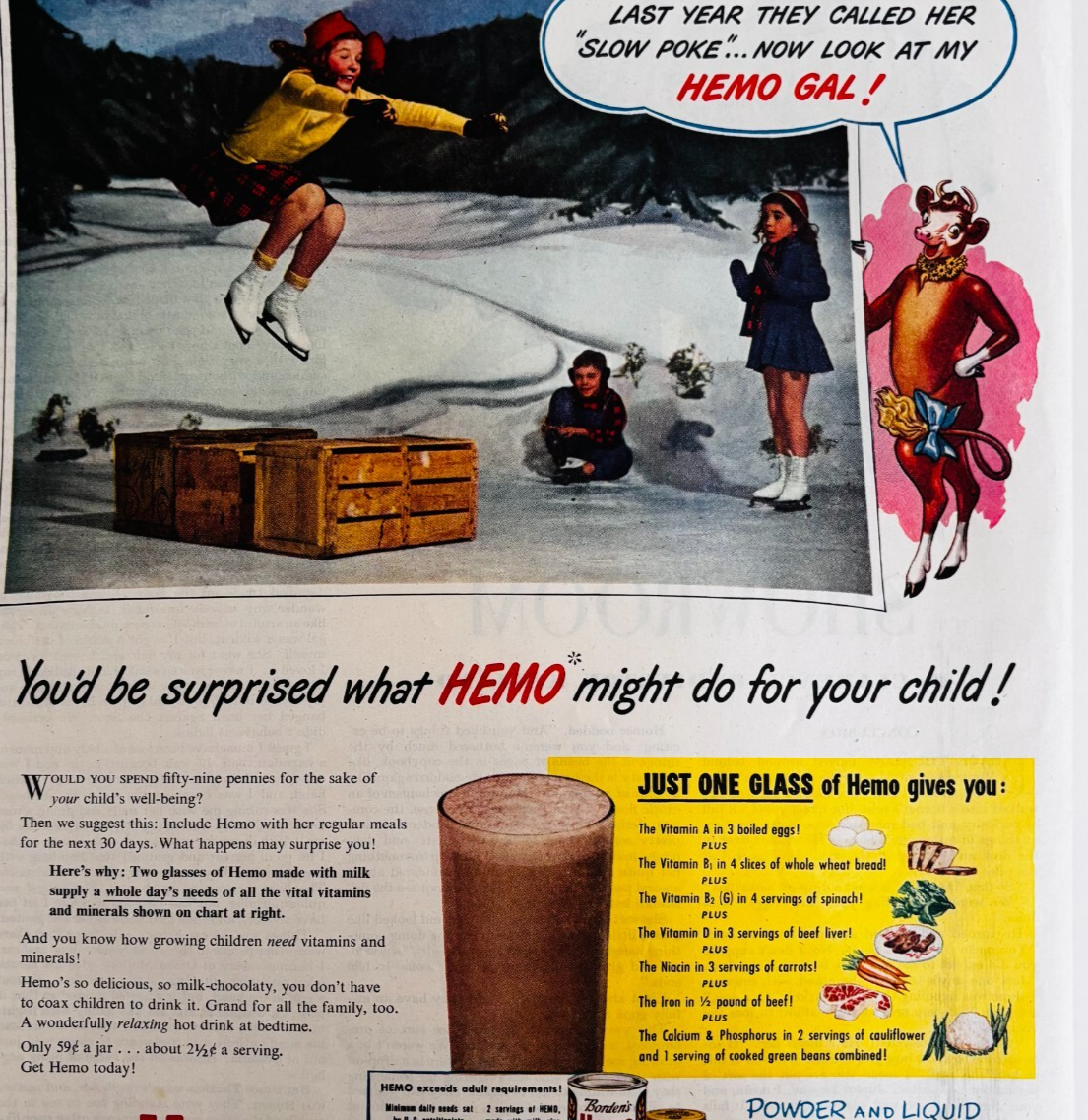 - 1947 Borden's Dairy Hemo Advertisement Nutritional Beverage Vintage DWWW8