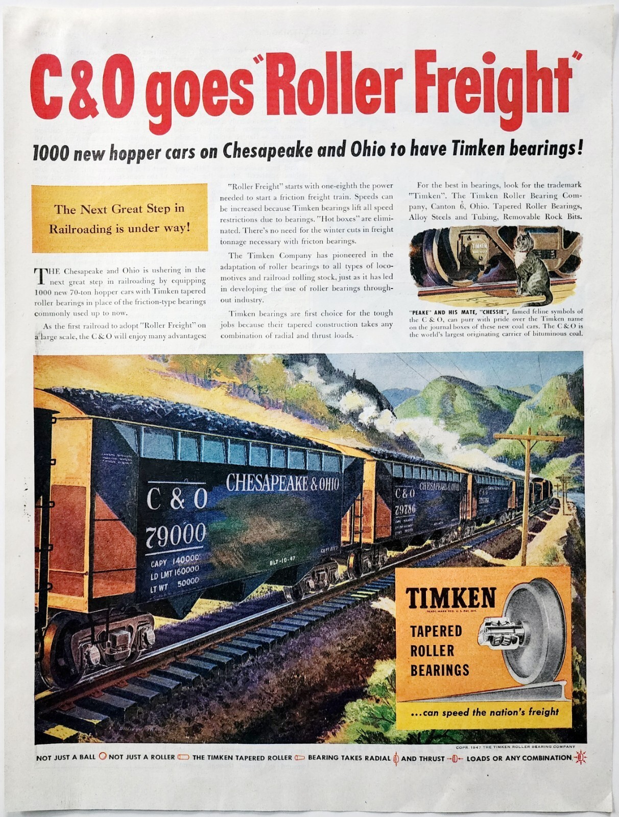 1947 C & O Railroad Line Train Advertisement Timken Bearings Freight DWJJ22