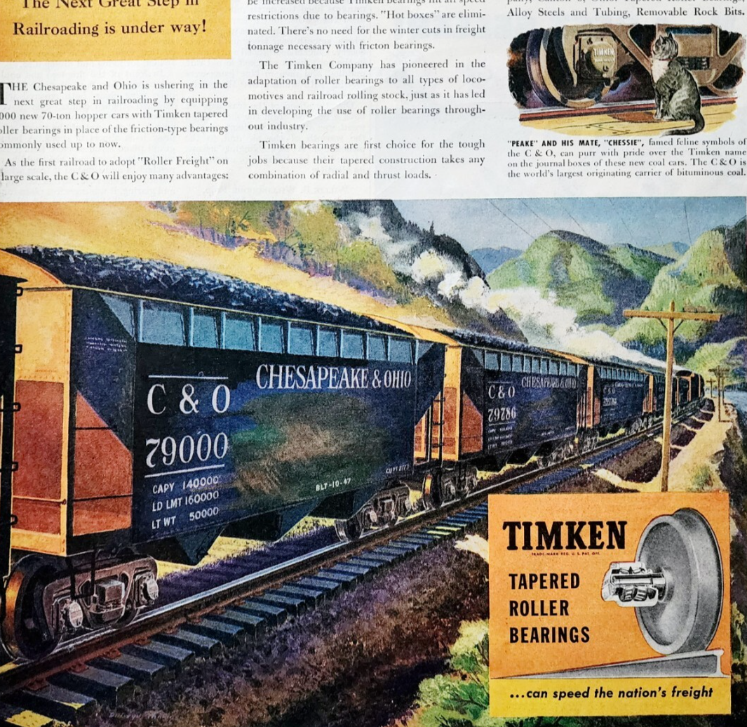 - 1947 C & O Railroad Line Train Advertisement Timken Bearings Freight DWJJ22