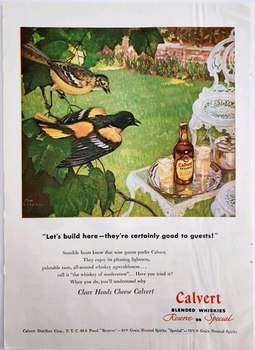 - 1947 Calvert Reserve Whiskey Oriole Birds Advertisement Distillery Liquor DWPP22