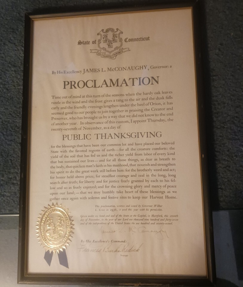 - 1947 Connecticut Thanksgiving Proclamation – Gov. James L. McConaughy, Original