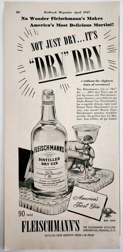 - 1947 Fleischmanns Distilled Dry Gin Advertisement Distillery Liquor DWPP22