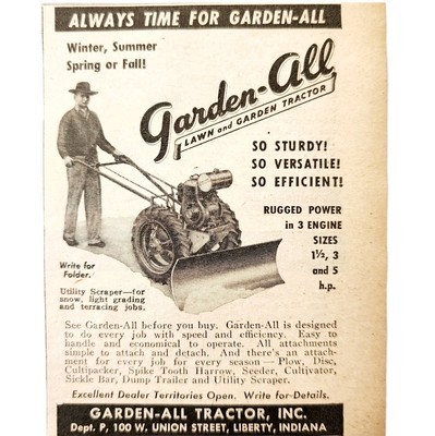 - 1947 Garden All Tractors All Seasons Plow Advertisement Vintage Agriculture E8J