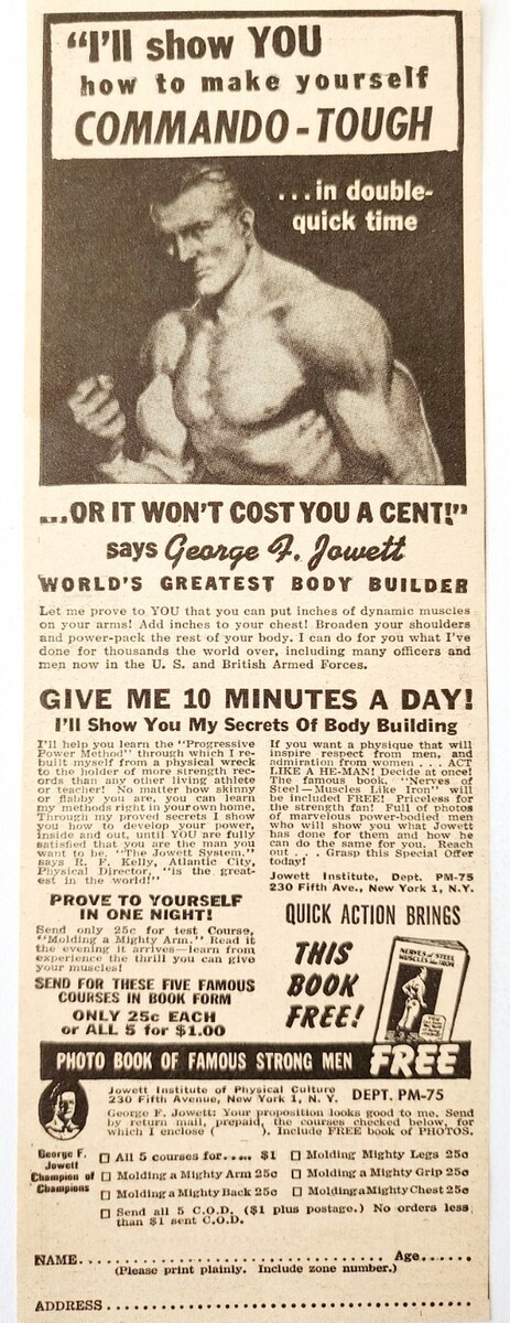 - 1947 George Jowett Commando Tough Muscles Advertisement Bodybuilding E8K