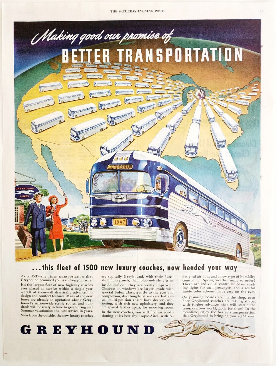 - 1947 Greyhound Bus Transportation Advertisement Luxury Coaches Line DWJJ20