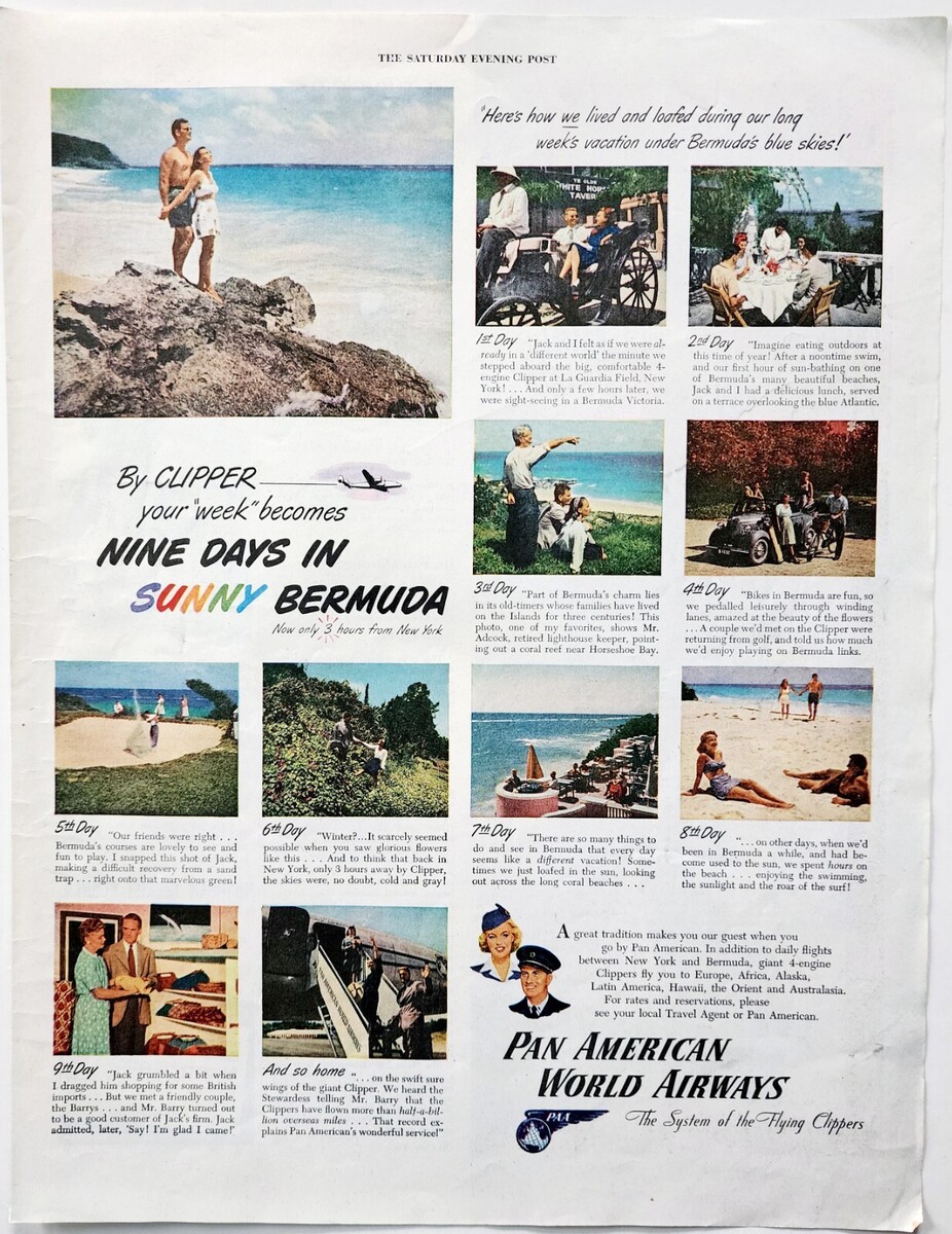 - 1947 Pan American Airways Advertisement Aviation Clipper Bermuda Travel DWJJ22
