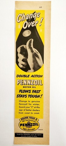 - 1947 Pennzoil Double Action Motor Oil Advertisement Pennsylvania DWNN18