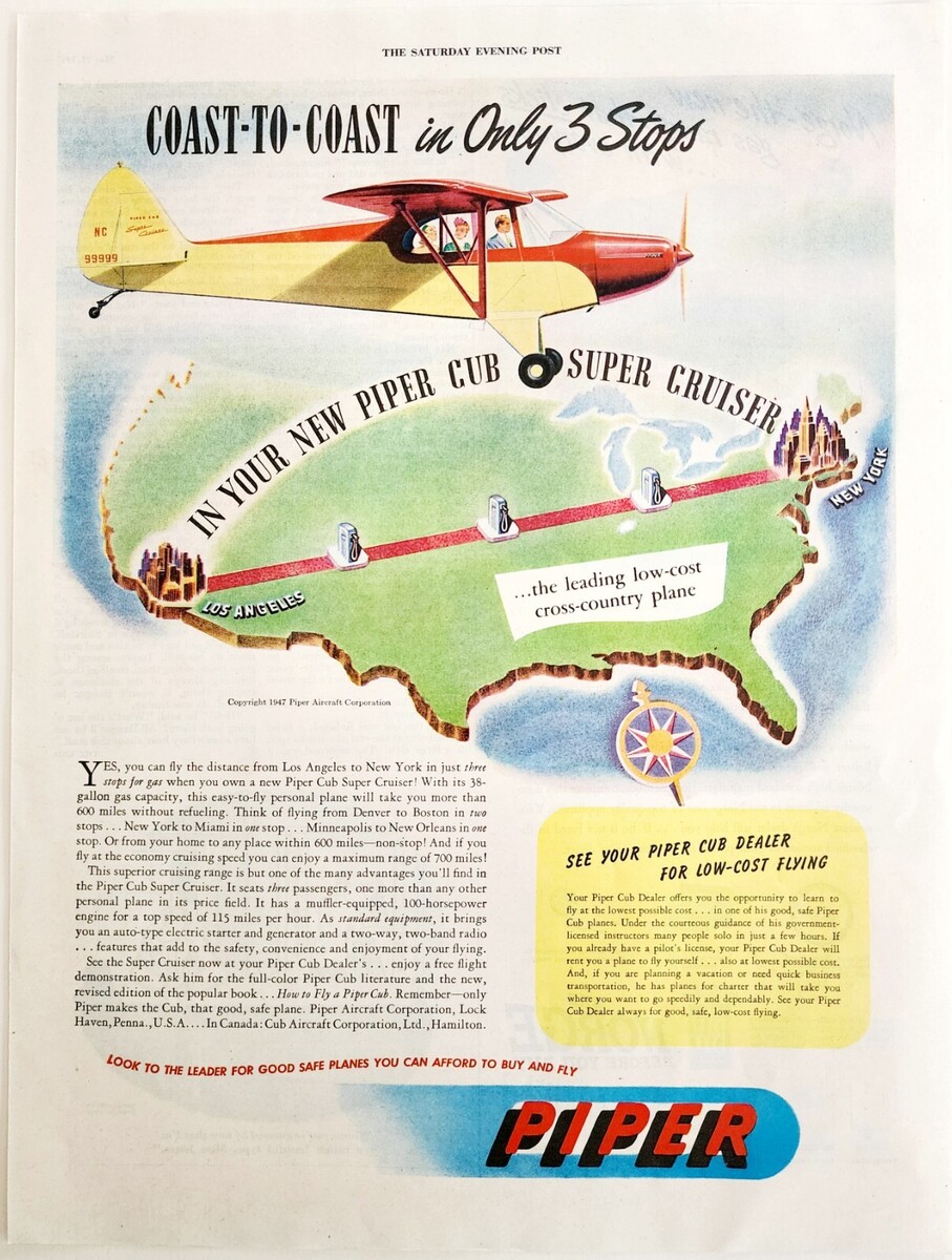 - 1947 Piper Cub Super Cruiser Advertisement Aviation Transportation DWJJ20