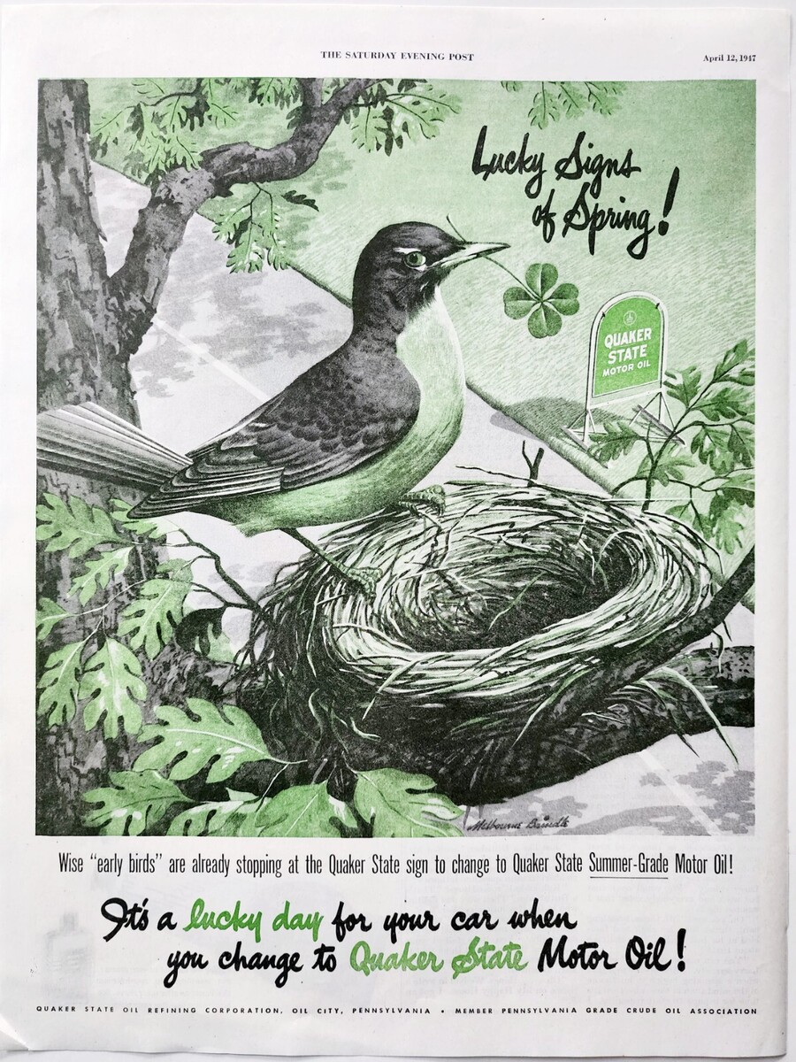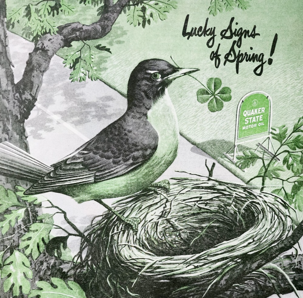 - 1947 Quaker State Motor Oil Advertisement Robin Bird Spring Automobilia DWJJ22