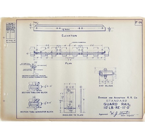 - 1947 Railroad Bangor Aroostook 112 LB Guard Rail Standard Blueprint F14 DWDD15