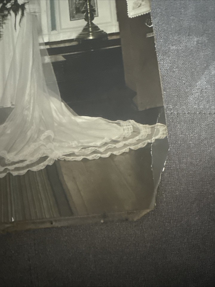 1947 Wedding Couple Portrait Bride Groom Catholic Church 40s Married Hand Col...