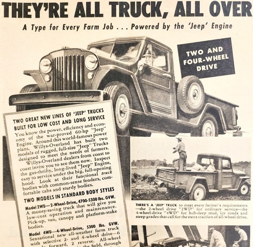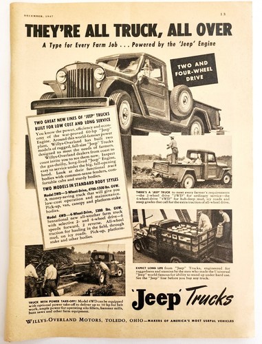 - 1947 Willys Overland Motors Jeep Trucks Advertisement Automobilia DWNN19