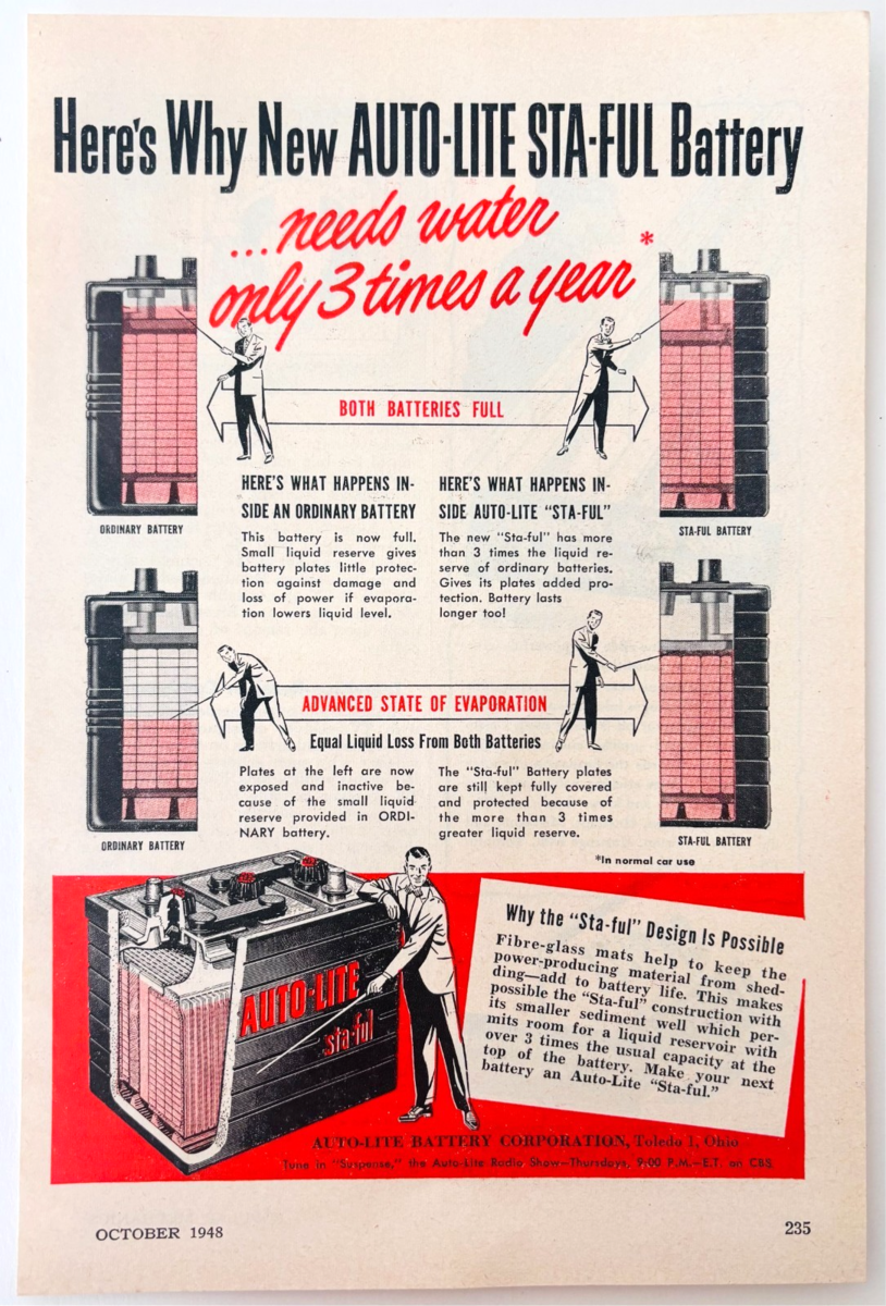- 1948 Auto-Lite Sta-Ful Battery Advertisement Automotive Supply Vintage F15U2