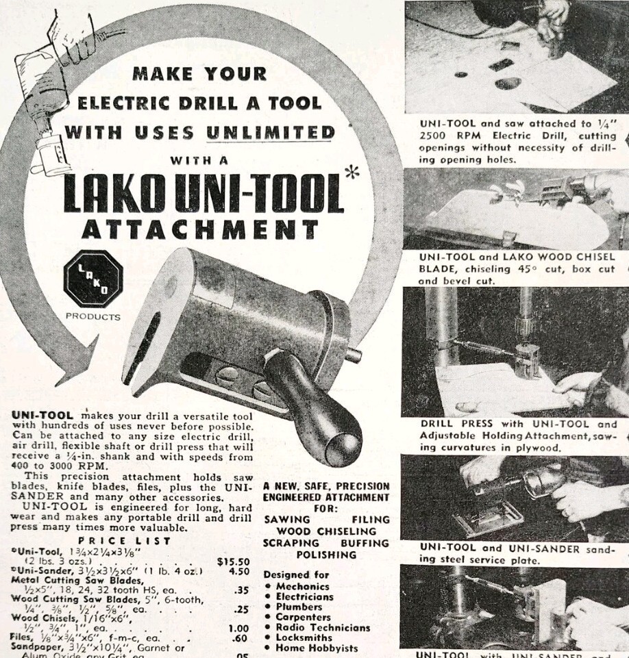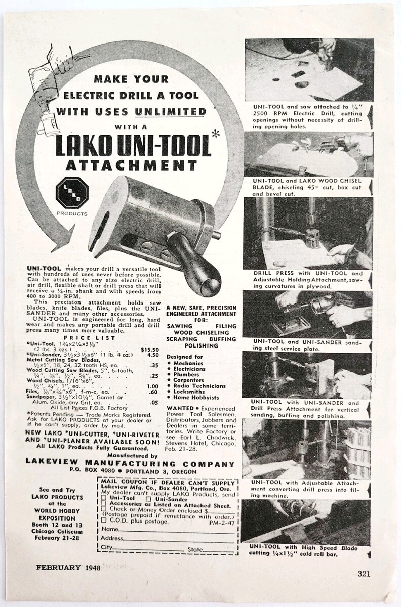 - 1948 Lakeview Lako Uni Tool Attachment Advertisement Universal Tool Vintage E2H4