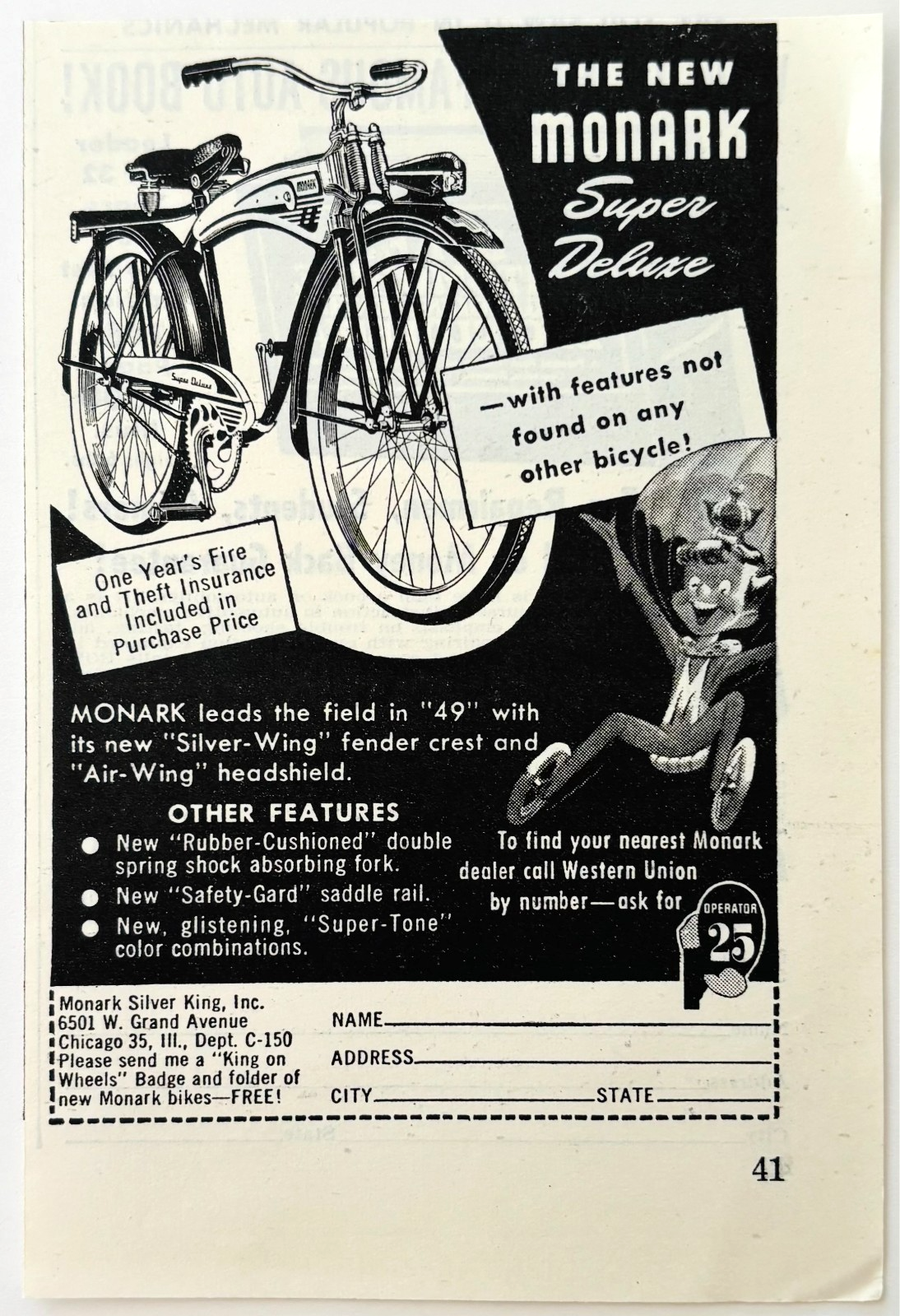 - 1949 Monark Super Deluxe Bicycle Advertisement Transportation Bikes DWU16A