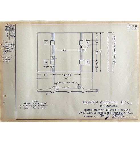 - 1949 Railroad Bangor Aroostook Ribbed Canted Tieplate Blueprint H25 DWDD14
