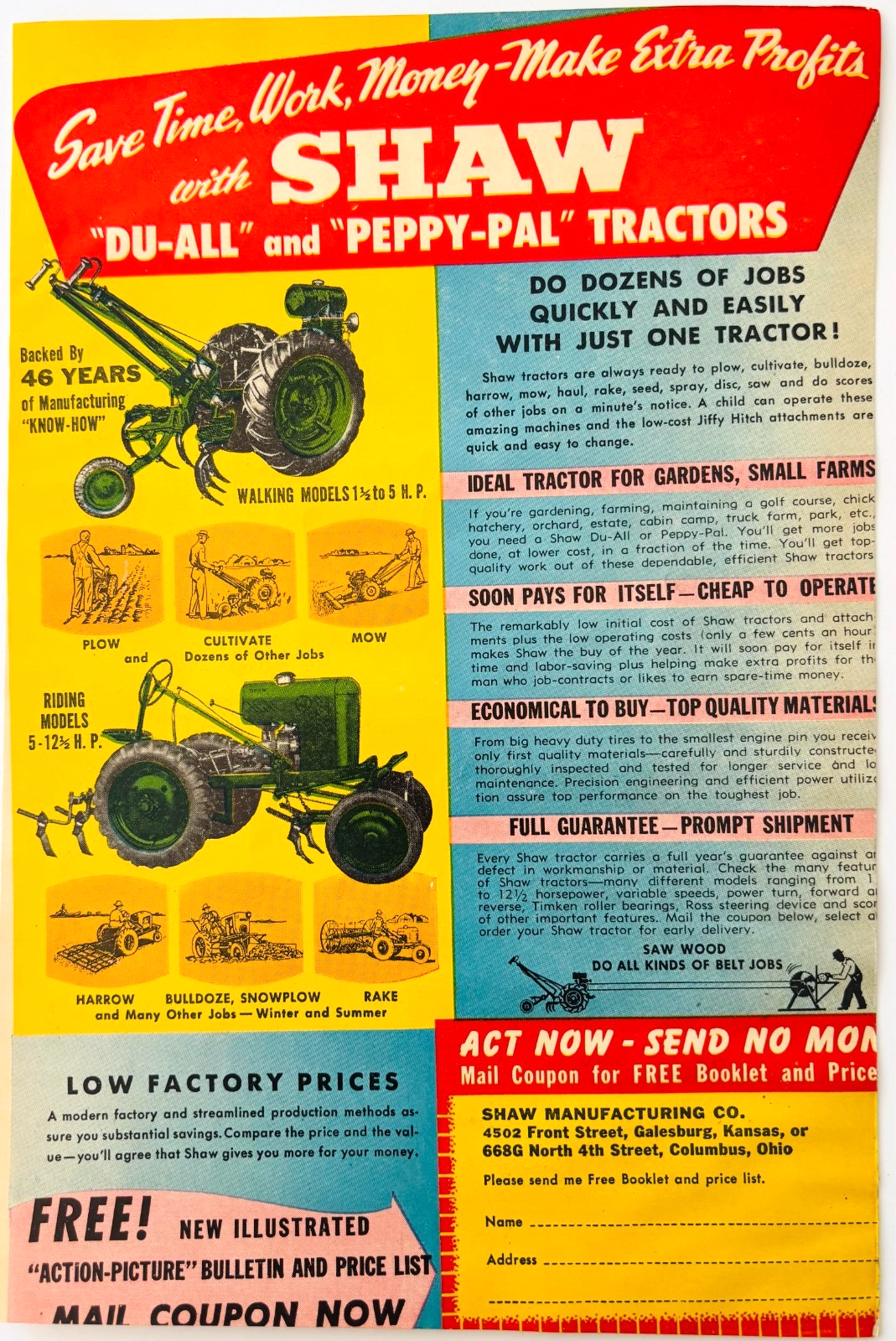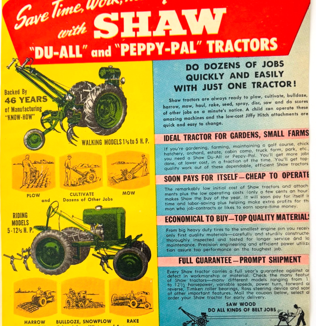- 1949 Shaw Garden Tractors Peppy Pal Advertisement Agriculture Machinery DWU16B