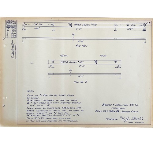 - 1950 Railroad Bangor Aroostook Switch Rods 80 And 100 LB Blueprint F8 DWDD15