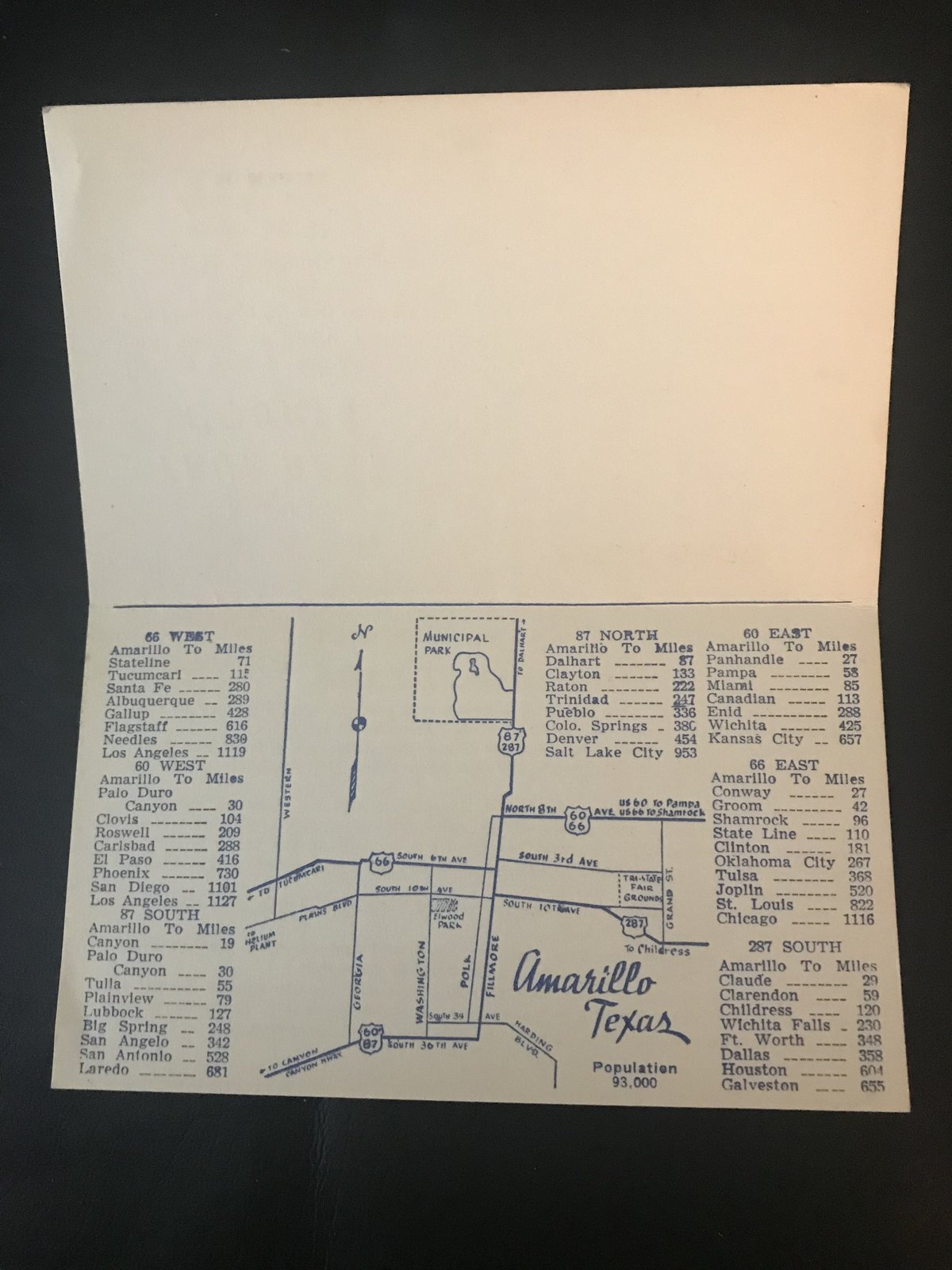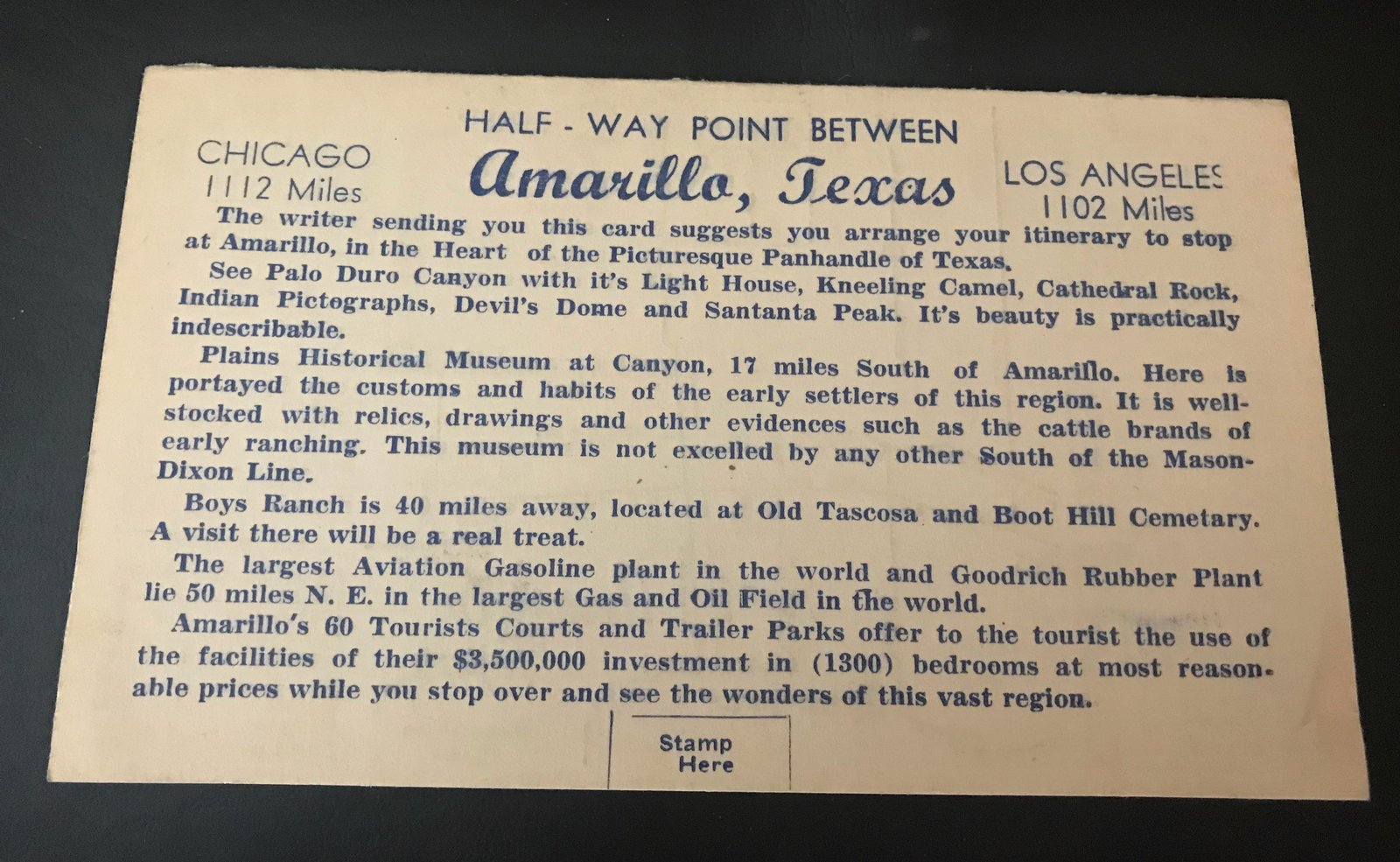 1950's Postcard - Visit Amarillo Texas Halfway Point