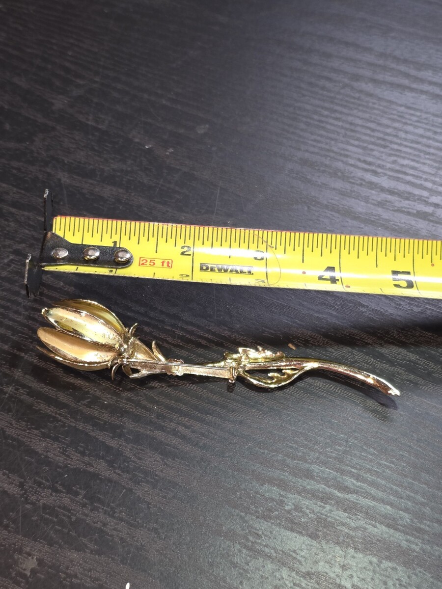 - 1950s Vintage Long Stem Rose Gold Tone Brooch Pin
