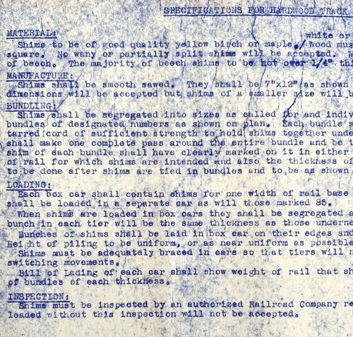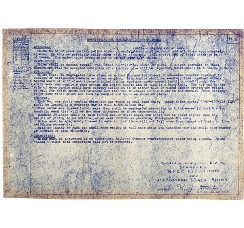 - 1951 Railroad Bangor Aroostook Hardwood Track Shim Specifics Blueprint H6 DWDD14