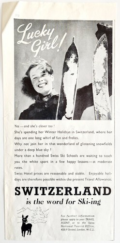 - 1951 Switzerland Skiing Winter Holiday Travel Advertisement Sphere UK E91C