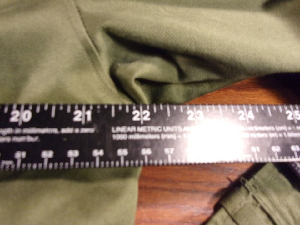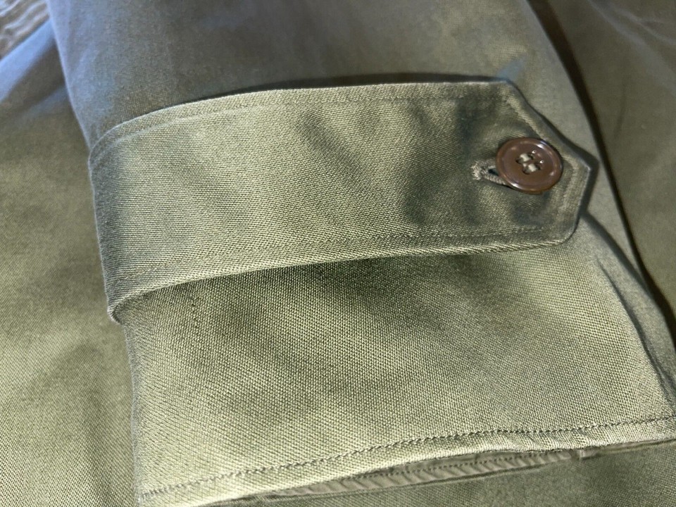 SOME SCUFFS AND MINOR STAINS, YOU CAN SEE THE OUTLINE OF SGT STRIPES ON THE ARMS.