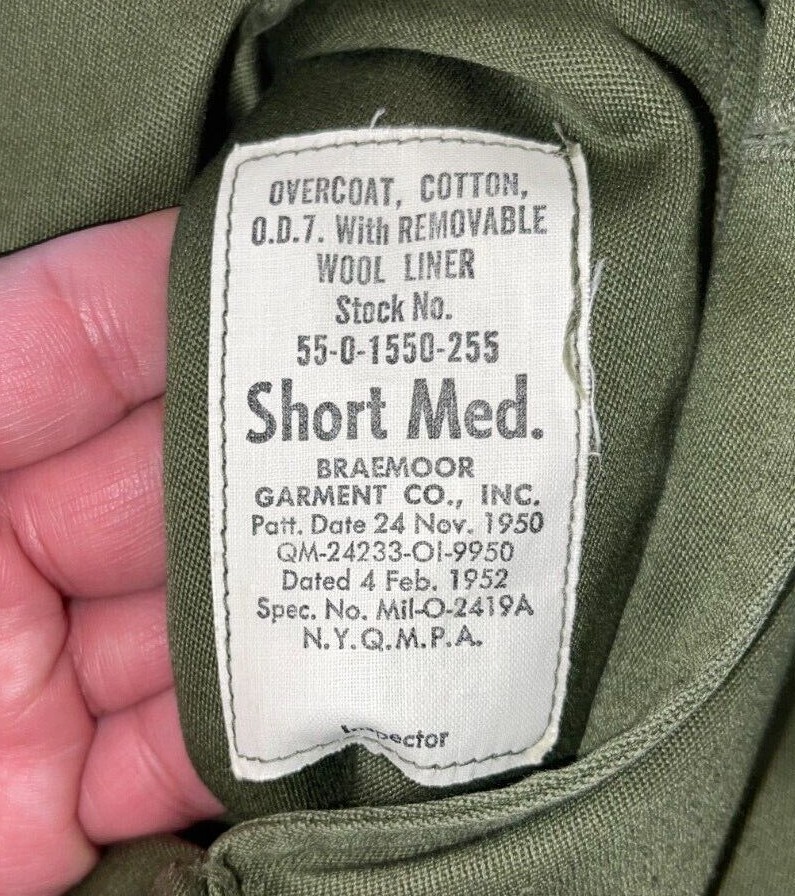 - 1952 AUTHENTIC ISSUE USGI OG-107 ARMY KOREAN WAR OVERCOAT TRENCH COAT OD 7