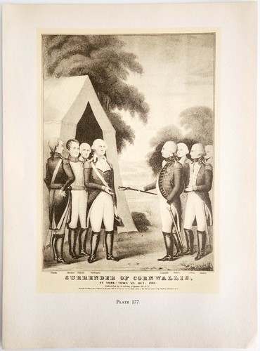 - 1952 Cornwallis Surrenders Washington Plate Litho Print Currier & Ives 2 DWLL18