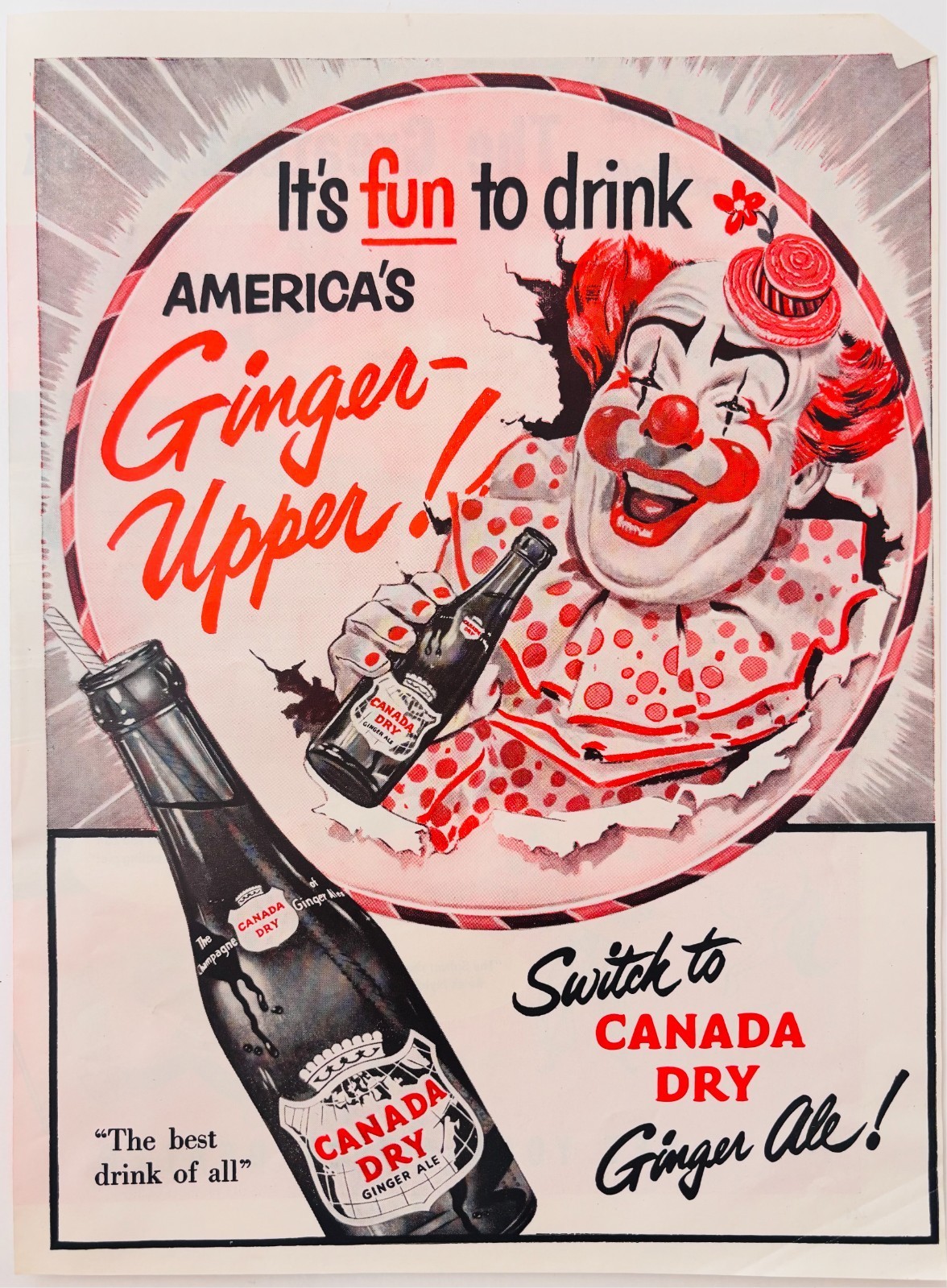 - 1953 Canada Dry Ginger Ale Advertisement Ringling Brothers Circus Clown F15S